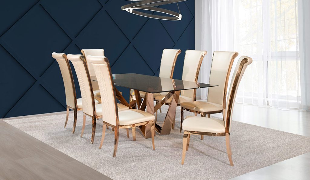 Transform every meal into a fine dining experience with our exquisite dining room suites. Crafted from the finest materials, our dining tables and chairs are designed to make a statement while providing the ultimate in comfort and durability. From elegant marble tabletops to richly stained hardwood finishes, our curated collection seamlessly blends sophistication with functionality, ensuring your dining space is both inviting and refined.